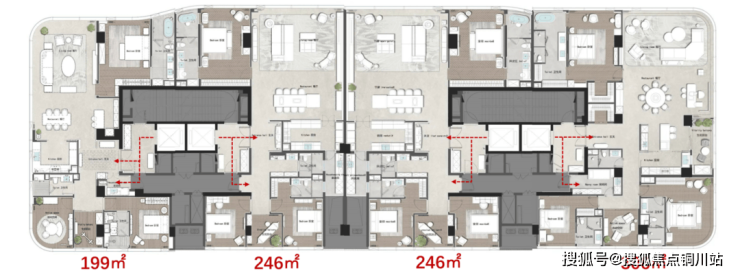 244套199-790㎡的大平层,清一色板楼!3梯2户甚至1梯1户,电梯直通你家门口,前厅都是你独享的。房间配置超奢!独立卫浴、衣帽间是标配,三代人住一起都互不打扰。