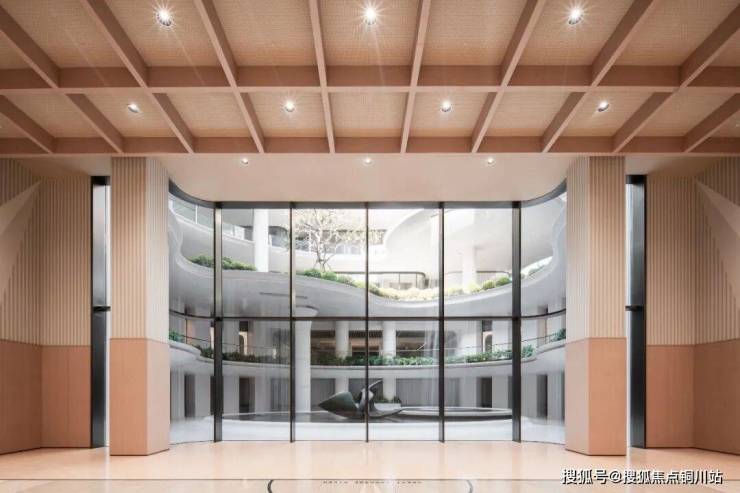 走进去更震撼!是一个贯穿地上地下四层的叠水中庭——“生机之环”。