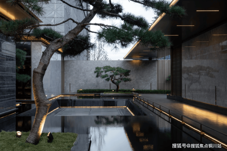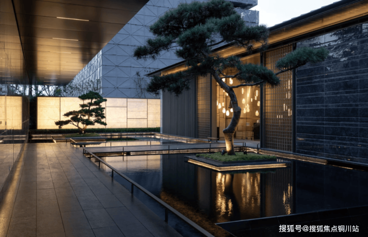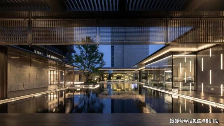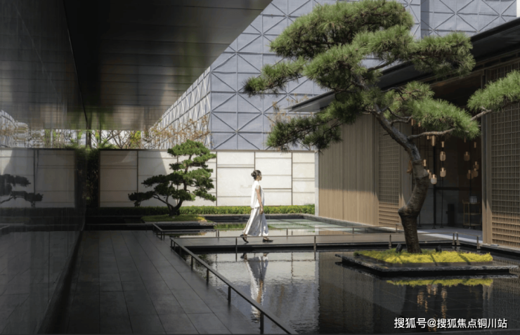 二重中心水景融合苏式园林独有的叠山理水艺术,运用流动且空灵的设计手法,打造出一个充满意境的景观空间。在这里,“一峰耸立如太华千寻,一勺波光似江湖万里”,生动展现了山水之间的诗意境界。秉承“曲则全”的哲理,结合东方美学的现代摄影视角,呈现一场视觉与心灵的盛宴。