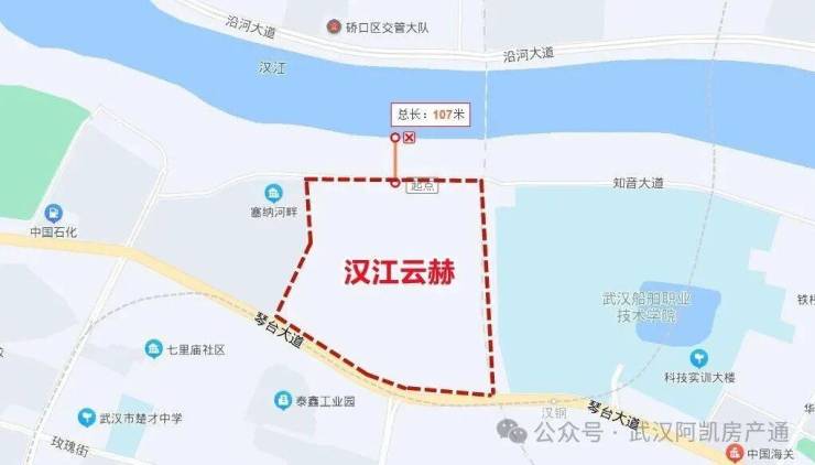 汉江云赫的绝对地理位置还是不错的,位于汉阳区琴台大道与梅家湖路交汇处,位于武汉1.5环,项目距离汉江直线距离也仅约100米,不折不扣的一线临江,周边生态环境也不错。