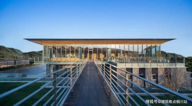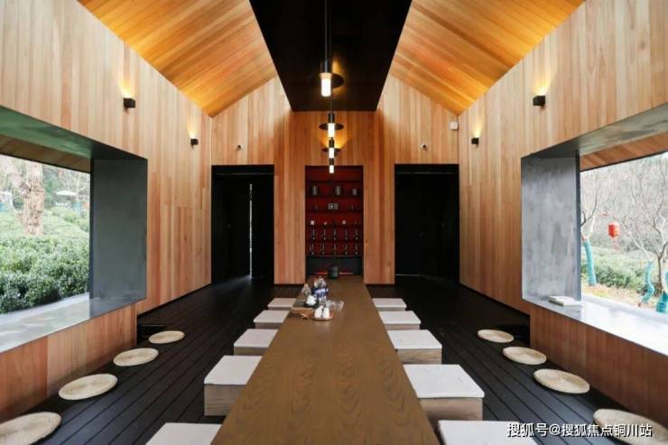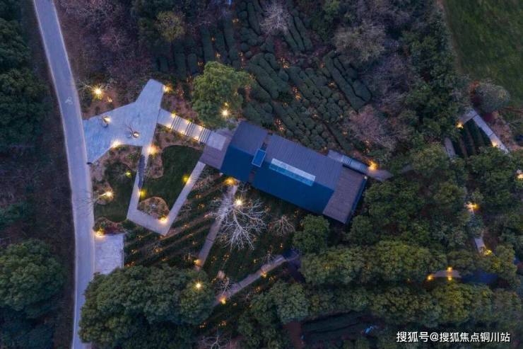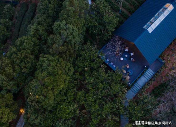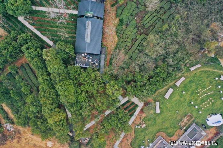 除开“有湖、有山谷、有别墅”以外,映入眼帘的还有坐落于山坡之上的茶林驿站,墨色的坡屋顶搭配原木色的墙体,满眼的深邃与宁静。