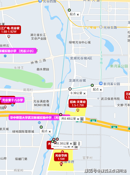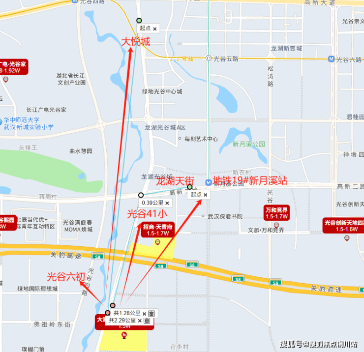 地铁:19号地铁新月溪站1.3公里 有轨电车光谷四路站约500米