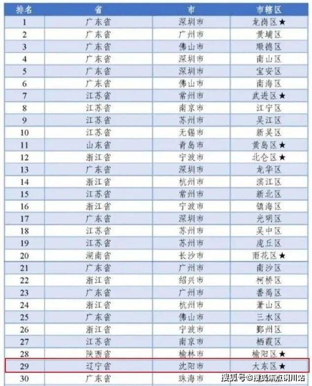 中国工业百强区(县)年度排名中,沈阳市大东区位列第二十九位,是东北地区排名最高区。