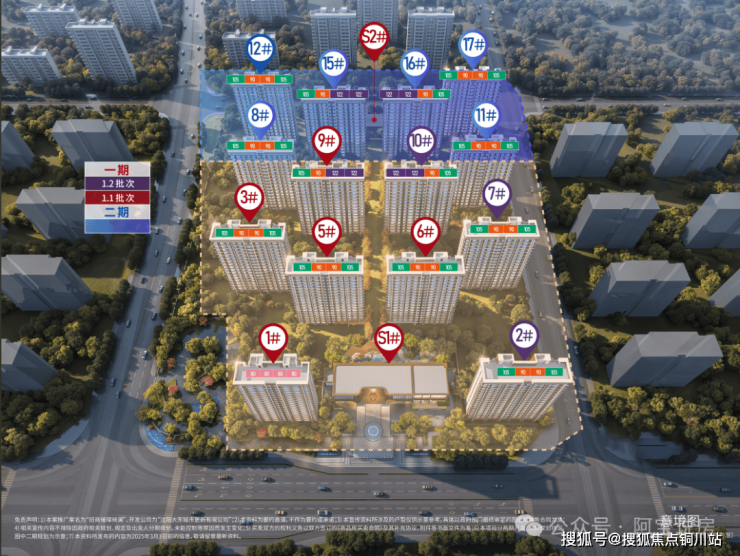 我们再来分析一下招商·璀璨映澜的建筑布局,因为是2.0的低容积率。产品在开发的时候原本可以采用“南高北低、拉高拍低”的“洋房+高层”传统兵营式布局,但是这样做的缺点是建筑之间缺少开拓性,楼体之间的间距过密,进而影响园区的独立景观设计。