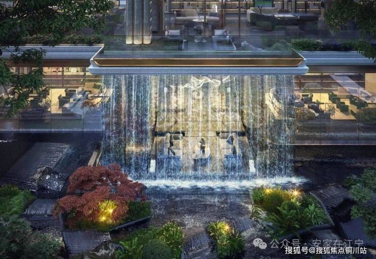 坐在露台之上,高约6米的飞流直下悬瀑、层叠而上的绿植、多层次水景犹如繁星点缀银河,一幅立体山水画卷在眼前缓缓打开,让人沉醉不知归路。