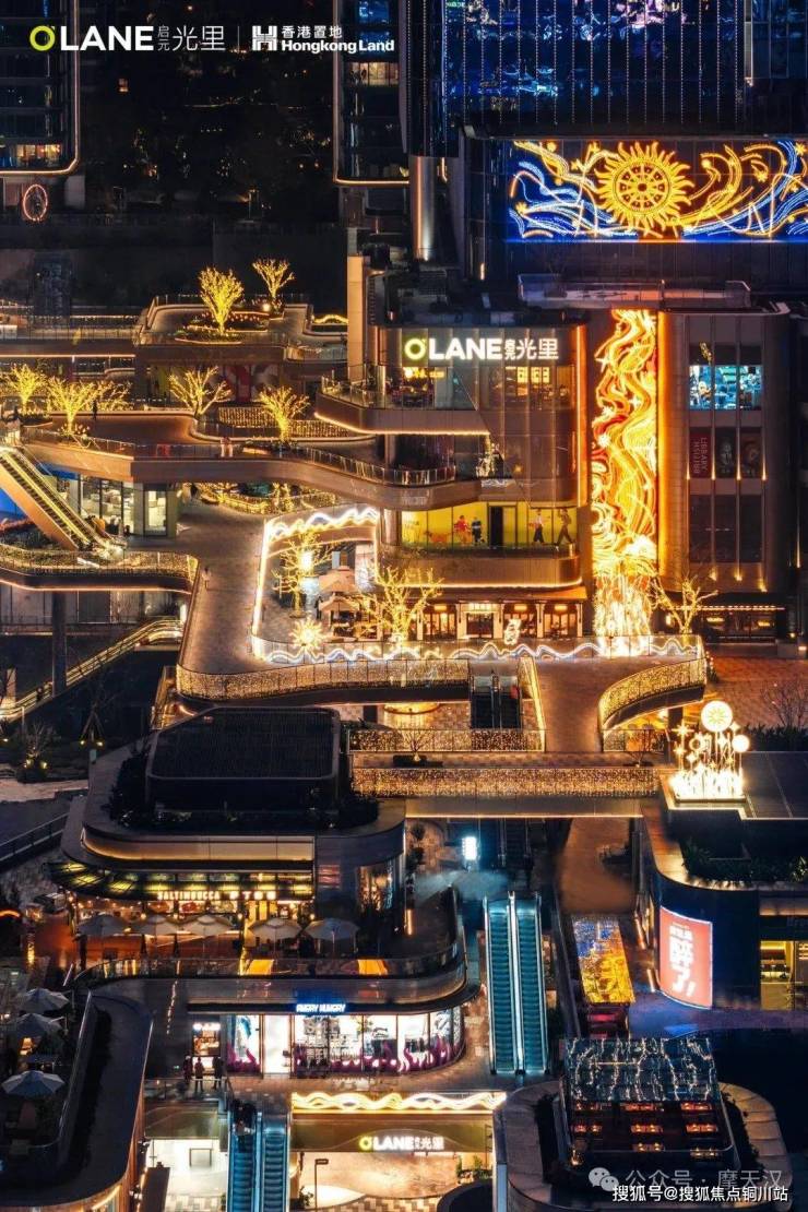 O'LANE 启元光里以岛屿街区形式呈现,层叠而起的「岛屿」空间最大落差达30米,在极其具有辨识度的同时还呼应了重庆山城地貌的城市特征,颇具巧思。