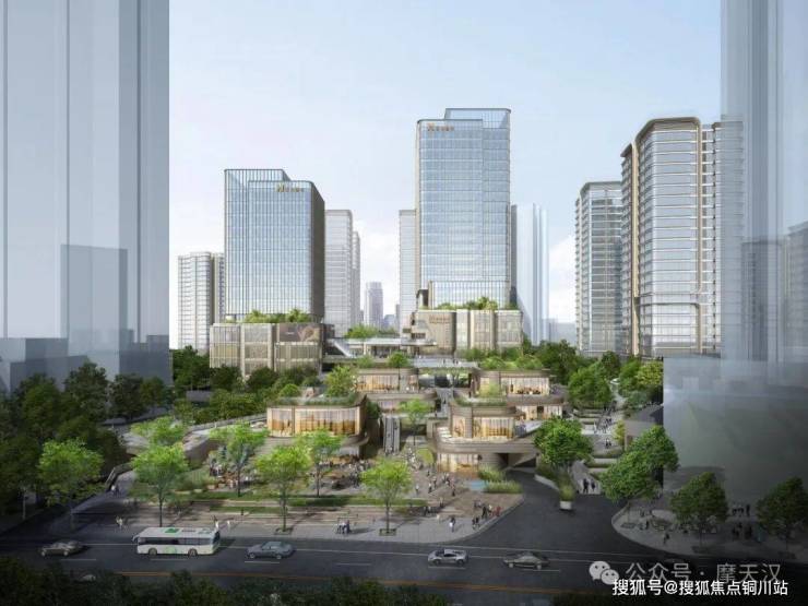 启元整体设计结合重庆标志性山城图景,以现代手法演绎“立体空间”之下的“市井滋味”,利用场地天然台地地形,通过堆叠、跌落、打开的手法形成散落式建筑布局,展现时尚灵动的当代城市气息。