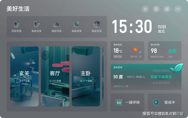 除此之外,智慧场景贯穿生活全周期:离家模式一键启动,灯光、空调自动关闭,窗帘合拢,安防系统同步布防;访客到访时,远程可视对讲、智能解锁与一键呼梯功能无缝衔接,尽显归家仪式感。