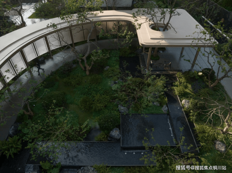 叠石流水的群岛聚落感园林,以仿生自然手法因地制宜布置,每块原石、每株草木都不是朋友圈的背景板,而是参与生活的伙伴——