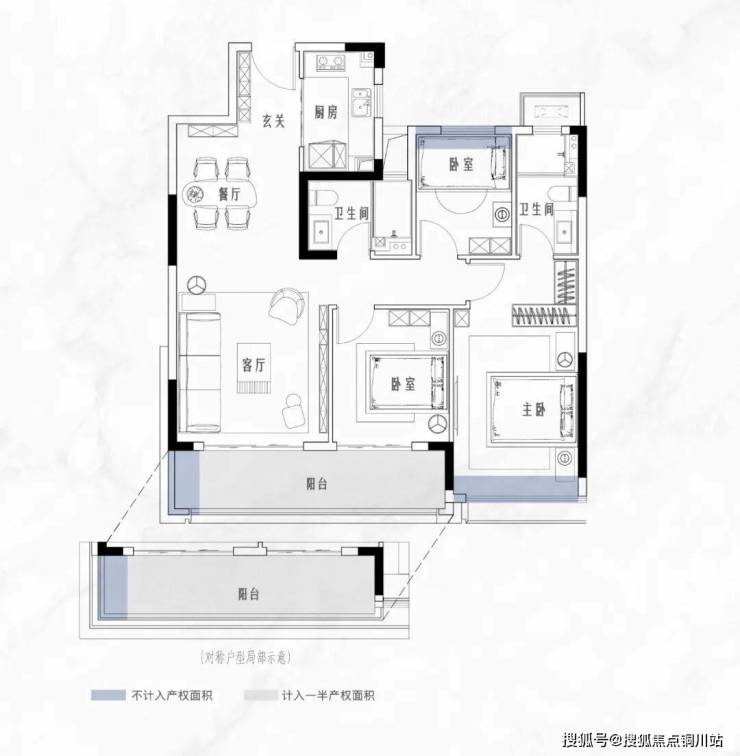 三开间朝南的设计,带宽景双联阳台,极致采光与视野,自然写意生活的奢适感。