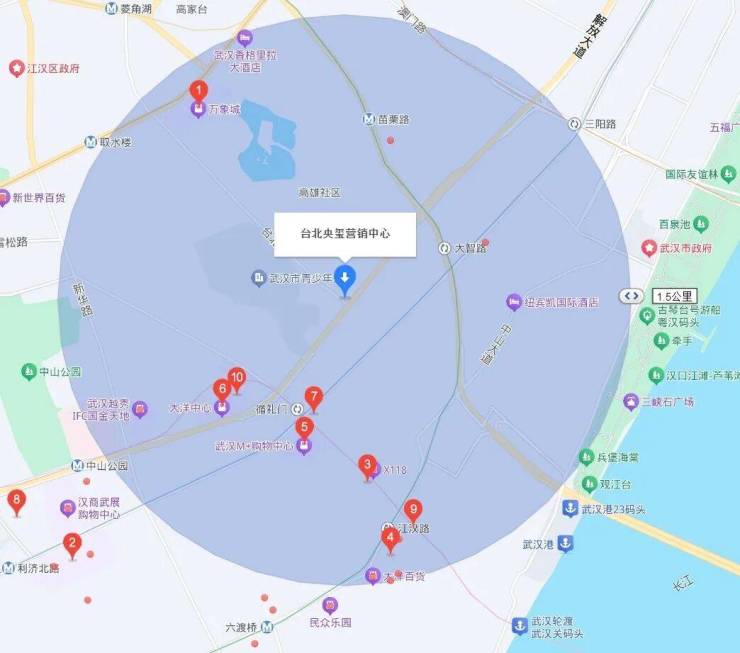 约700米到江汉路步行街,约1公里到万象城和国金IFC天地,武汉天地、武商MALL、恒隆广场,三大王牌的直线距离,被浓缩至2.7公里,灯红酒绿迷人眼,逛遍7天不重样。