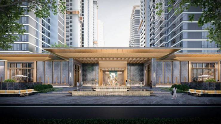 步行至归家大堂,一座《碧盘玉珠》的雕塑,依然锲而不舍地呼应古韵主调,致力于营造一体化的视觉记忆点。