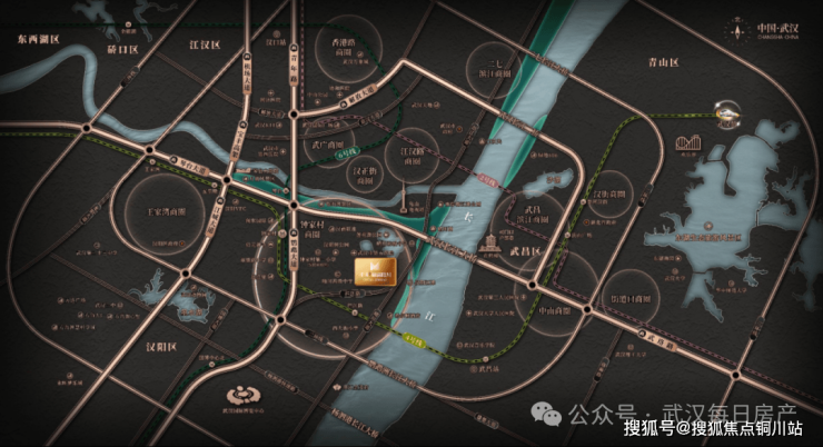 连为一体后,就像城市里的黄金十字中轴,于汉阳内环钟家村交汇
