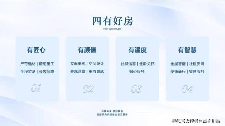 在住建部提出的“安全耐久、健康舒适、绿色低碳、智慧便捷”总体方向基础上,企业将其融入自身的开发逻辑与产品营造中,凝练为 “有匠心、有颜值、有温度、有智慧” 四大价值维度。这一体系旨在将宏观政策导向,转化为可感知、可体验、可落地的产品语言与服务承诺。