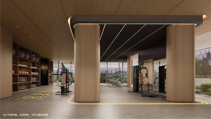 健身房,一个散发荷尔蒙的空间。落地窗的设计引入了室外景色,让充足的阳光照射,锻炼之中欣赏景观之美。