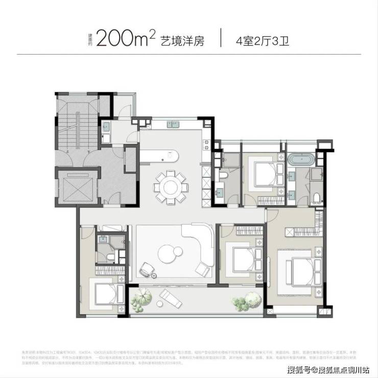 建面约200㎡四房两厅三卫洋房,入户玄关和客厅背景墙为梵高棕奢石打造,充满着艺术与奢华气息。