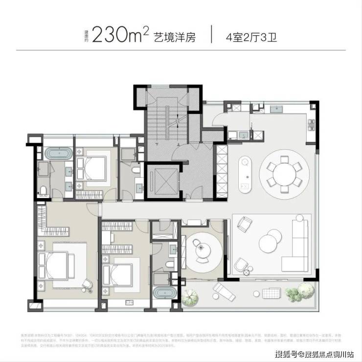 九庐洋房外立面沿用曲面流线型建筑立面,低密布局更显精致。在强调构建“艺术画框”式立体感的同时,首度将3000K色温概念引入外立面。