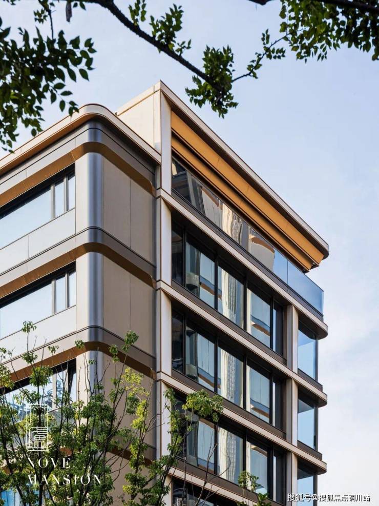 立面基座部分采用天然奢石,塔身采用精致的新工艺仿石铝板,暖色全金属铝板组成塔冠。大面积运用线条、弧线、斜切等元素,繁复工艺严苛定制。