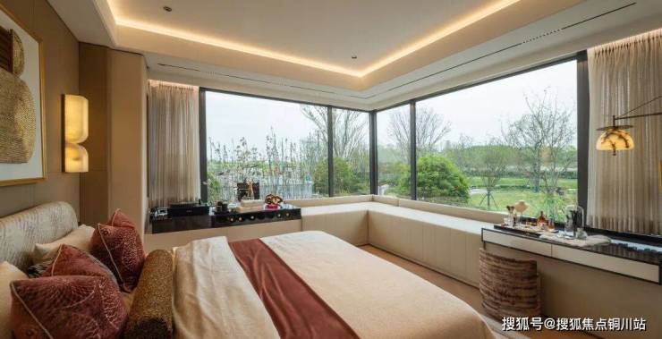 主卧优化设计:视觉尺度全面延展,搭配IMAX级270°观景飘窗,晨光、星夜、城市灯火皆成私享。