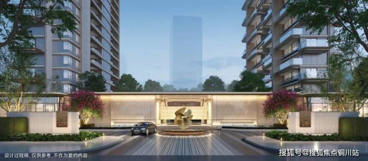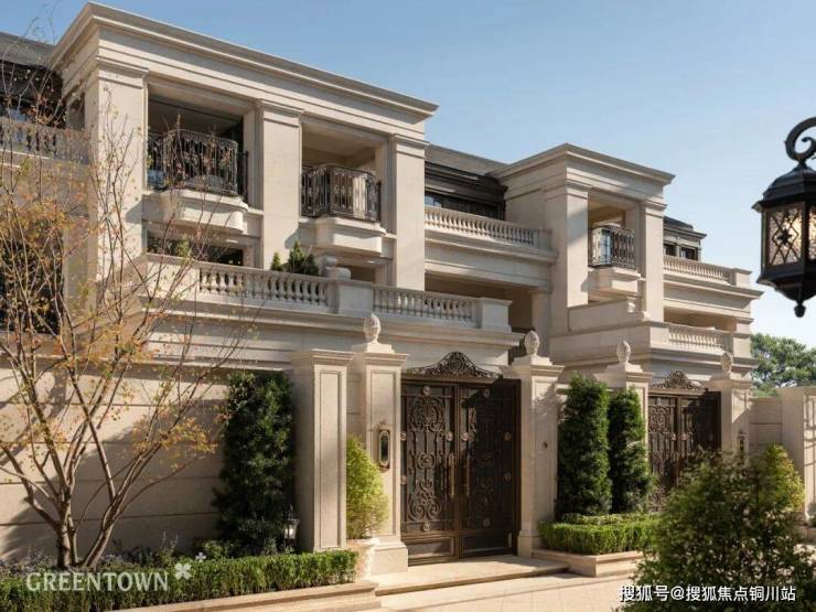 步入示范区,迎面而来的是宽约60多米「玫瑰皇冠」恢弘门庭,冠部打造无界嬉水池,冠部以下采用双排罗马柱拱卫,流淌法式宫廷的永恒韵律。