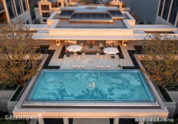 二楼天台,是嘉兴前所未见的「天空之境」,嘉兴首个空中悬挑嬉水池,如邮轮船头,凌越姚家荡公园之上,24K金玫瑰徽章雕刻于池底,倒影天空霞彩,映照传奇辉光。